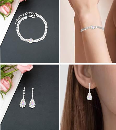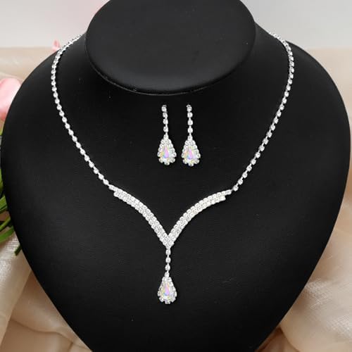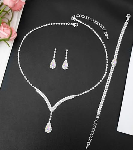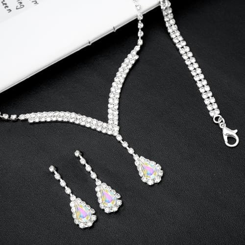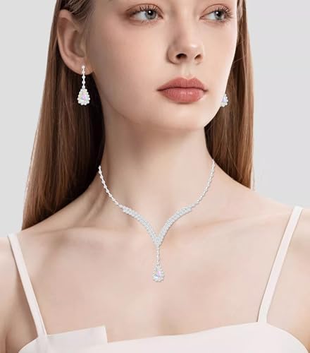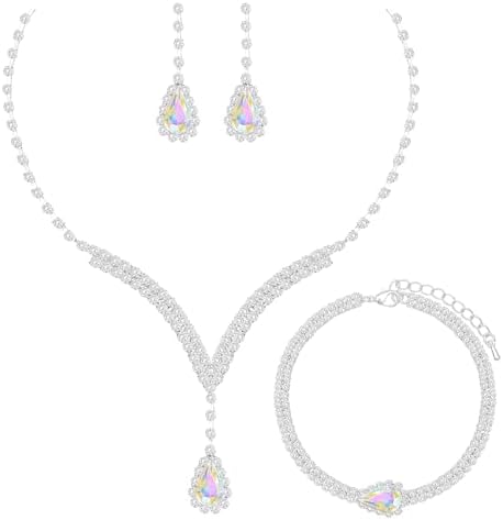 Sponsored Ad - Elegant V-shape Crystal Wedding Jewelry Set for Women Bridal Necklace Earrings Bracelet Set Brides Bridesmaids Party Prom Formal Costume Accessories