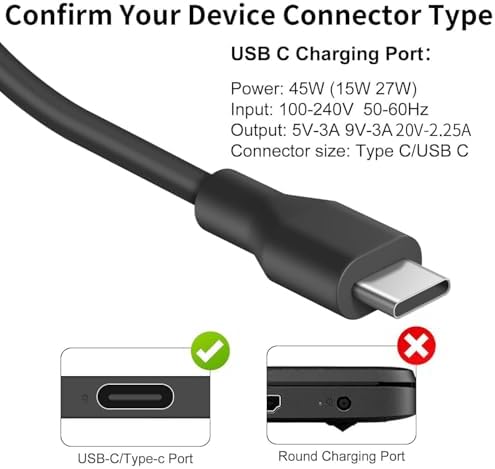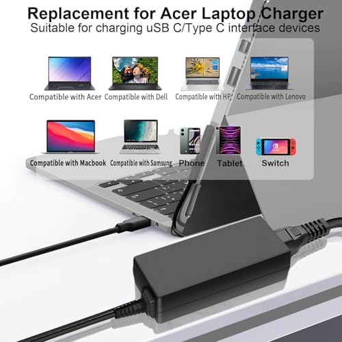 45W USB C Laptop Charger for Acer Chromebook R13 11 13 15 311 315 CP311 CP713 C933 CB5-312T R751T SF713 SP714 N17Q5 N17P6 N16Q10 N16Q14 N16Q12 N18Q1 N15Q13 PA-1450-78 A16-045N1A AC Adapter Power Cord