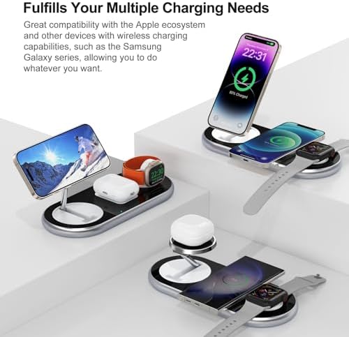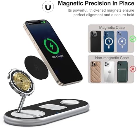 Sponsored Ad - 3 in 1 Charging Station for Apple Devices, Faster Mag-Safe Charger Stand, Magnetic Wireless Charger Station for iPhone 17 16 15 14 13 12 Pro Max Plus, Apple Watch iwacth & AirPods, Adju