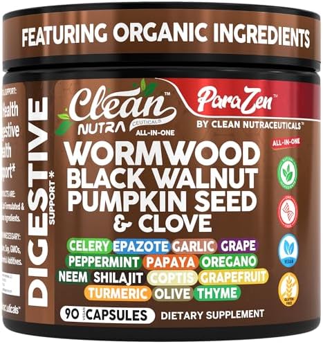 Sponsored Ad - Clean Nutra Wormwood Black Walnut Pumpkin Seed Clove Oil Celery Garlic Grape Papaya Neem Diatomaceous Earth Womens Probiotic Gut Health Cleanse Detox Oregano Olive Turmeric Supplement V
