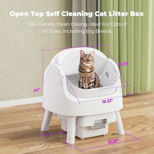 Sponsored Ad - Self-Cleaning Cat Litter Box for Multiple Cats - Automatic, Open Top, White with Liners and Mat Included