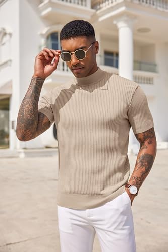 Sponsored Ad - Men's Mock Turtleneck Sweater Short Sleeve Casual Basic Tops Ribbed Knit Pullover Solid Tee