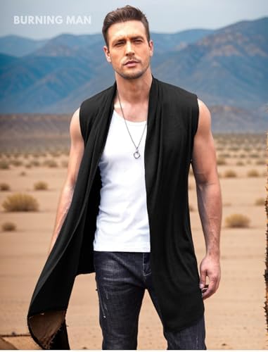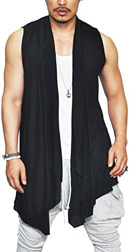 Men's Ruffle Shawl Collar Cardigan Sleeveless Open Front Sleeveless Kimono Vest