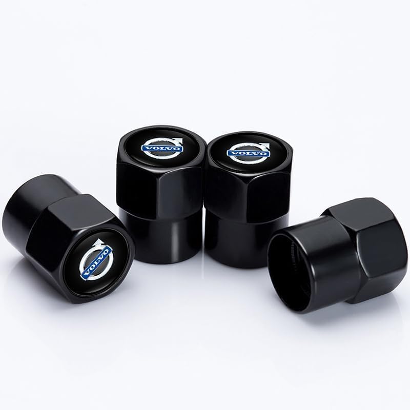 4Pcs Car Tire Valve Stem Caps, Tires Air Caps Cover Corrosion Resistant Tire Valve Cap Accessory for Volvo s60 s90 xc60 xc40 xc90 v60 v90 Series All Models Wheel Cap WOVO_Black