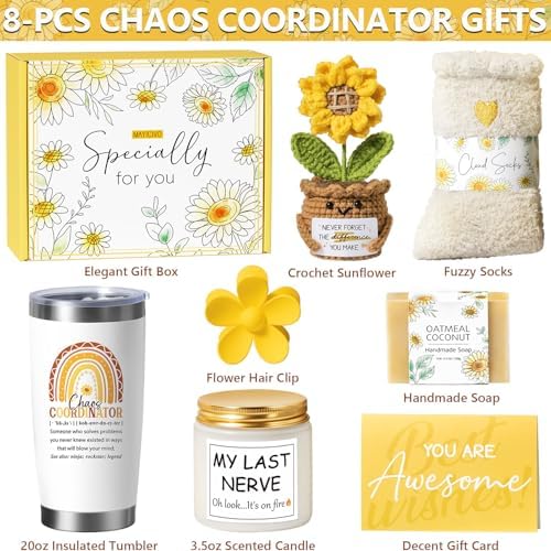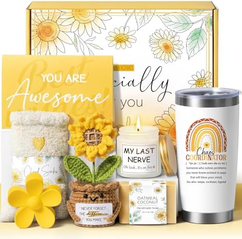 Thank You Gifts for Women, Coworker Christmas Employee Appreciation Gifts for Teacher Manager Nurse Chaos Coordinator Gift for Women Office Farewell Birthday Boss Day Gift for Boss Lady Sunflower Box