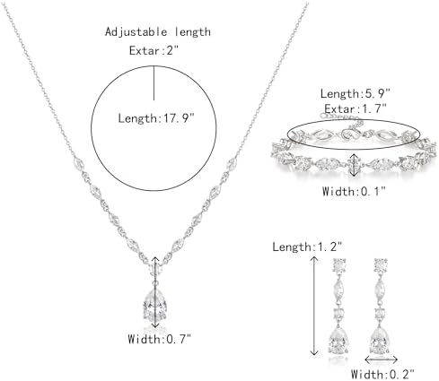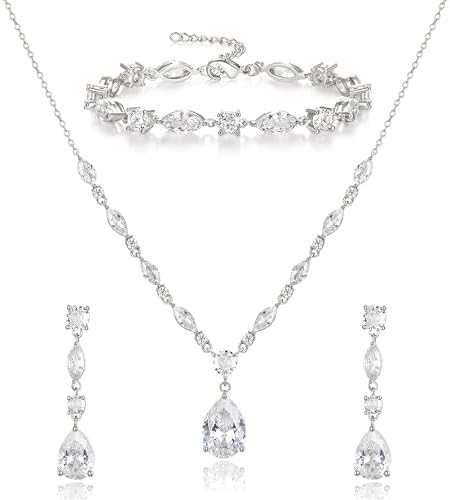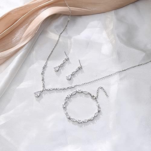 Sponsored Ad - Crysdue Teardrop Bridal Jewelry Set for Wedding Party, Silver/14K/Rose Gold Plated Prom Costume Jewellery for Bride Bridesmaids Women, Cubic Zirconia Necklace Dangle Earrings Bracelet