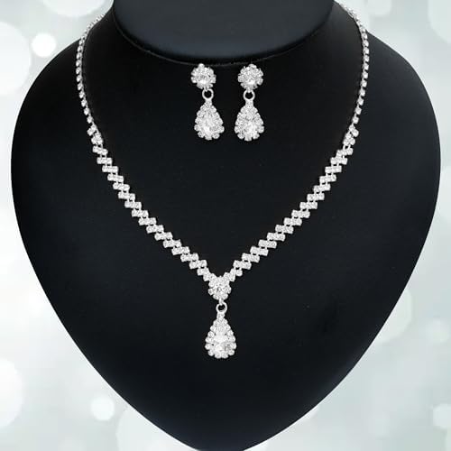 HONGLU Elegant Crystal Necklace Earrings Bracelets Set Silver Bridal Wedding Jewelry Sets Bride Bridesmaids Prom Formal Costume Accessories for Women