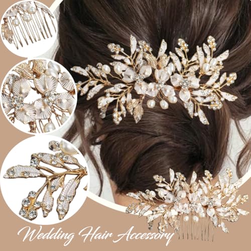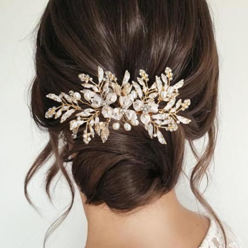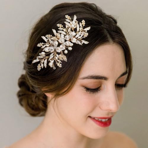 ALUINN Crystal Bride Wedding Hair Comb Pearl Hair Piece Rhinestone Bridal Hair Accessories for Brides Bridesmaids Women (Gold)