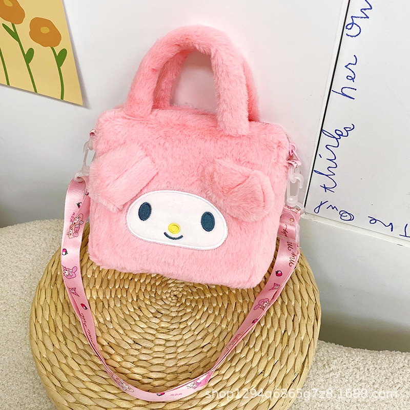 Cute Cartoon Kids Sanrio Mini Crossbody Bag Backpack Plush Doll Kuromi Melody Kitty Shoulder Bag Handheld Cosmetic Bag