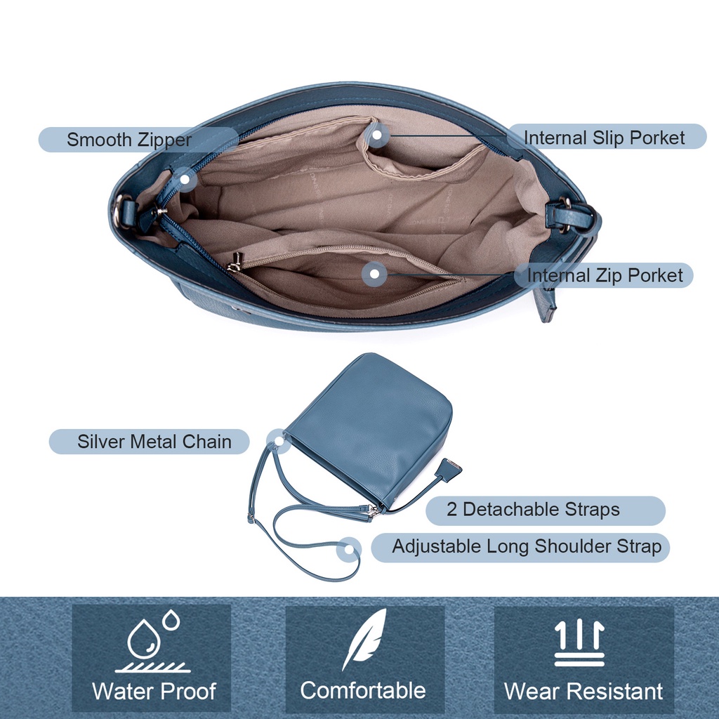 Material Quality:good Colour:good Highly recommended. Good quality bags. Like it so much that I bought 3 colors. Blue, Creamy Grey and Light brown. Will buy again. Really worth it. Workmanship is good.
