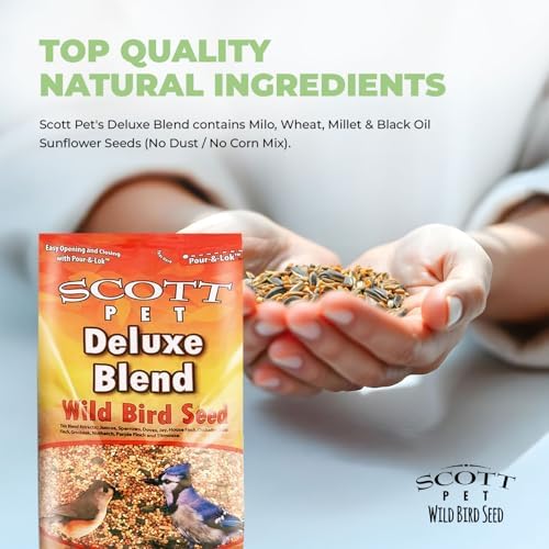 Scott Pet Wild Bird Seed, Deluxe Blend, 11 lbs Bag, No Dust, No Corn Mix, Feed, Great for All Feeder Types, Food for Outside Wild Birds