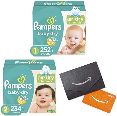 Diapers Newborn/Size 1 (8-14 lb), 252 Count - Pampers Baby Dry Disposable Baby Diapers with Diapers Size 2, 234 Count and Amazon.com Gift Card in a Mini Envelope
