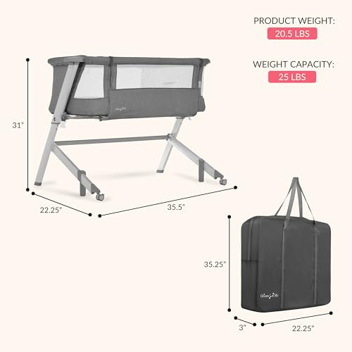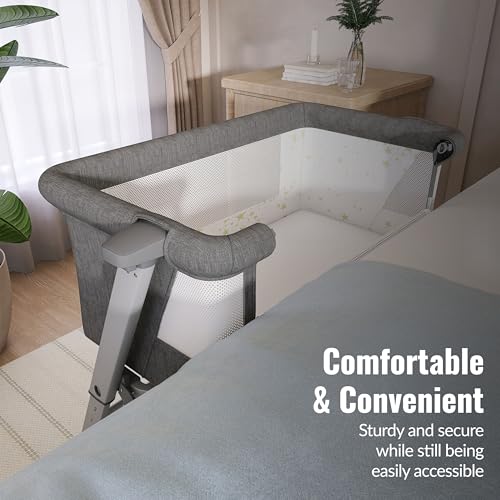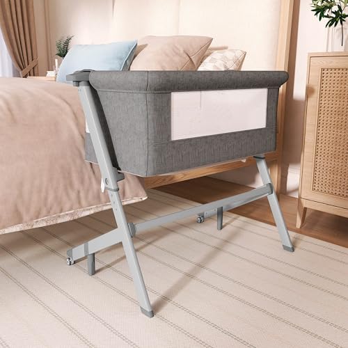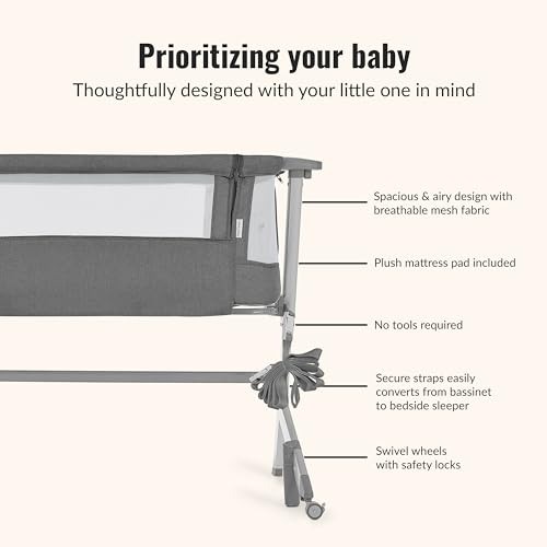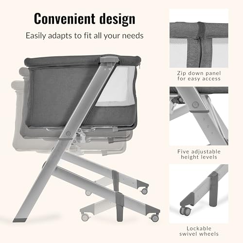 Dream On Me Skylar Bassinet and Bedside Sleeper in Grey, Lightweight and Portable Baby Bassinet, Five Position Adjustable Height, Easy to Fold and Carry Travel Bassinet, JPMA Certified