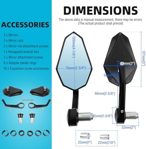 Sponsored Ad - Motorcycle Bar End Mirrors Black CNC Bar End Mirrors for Motorcycles Compatible with Honda Kawasaki Suzuki Scooter and More (Blue Glass Lens)