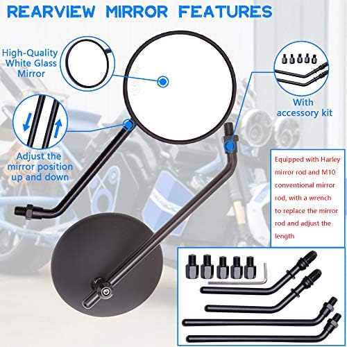 Sponsored Ad - 3.8" Motorcycle Rear View Side Mirror Round 8mm 10mm Universal Compatible with CB350 CB1100 Guide ATV Dirt Bike Cruiser Chopper - Black #1