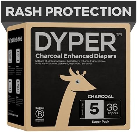 Charcoal Enhanced Day & Overnight Disposable Baby Diapers - Made with Plant-Based* & Skin-Friendly Ingredients, Hypoallergenic for Sensitive Skin - Size 5, (36 Count)
