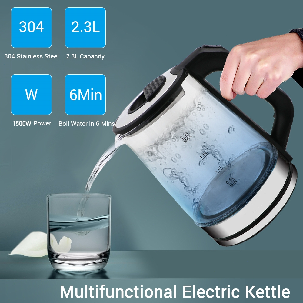 Electric 2.3L Glass Kettle Automatic Power-off LED Light Boil-Dry Protection Premium Water Bottle EH0036