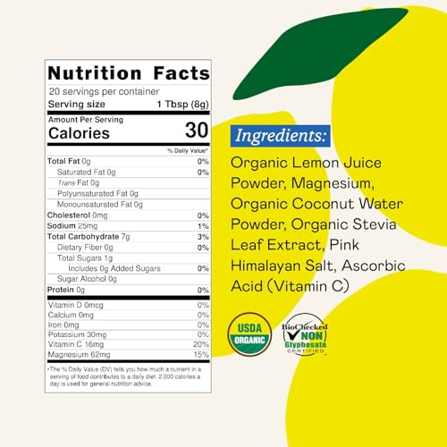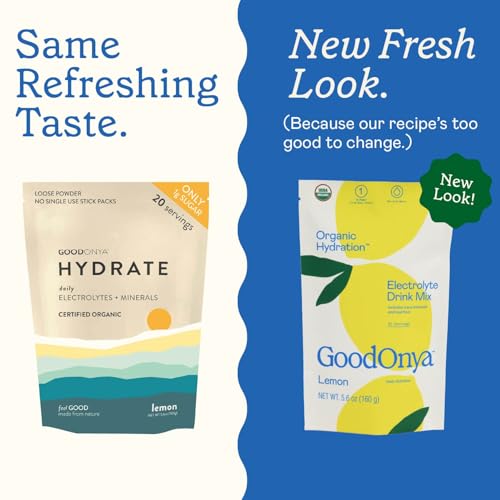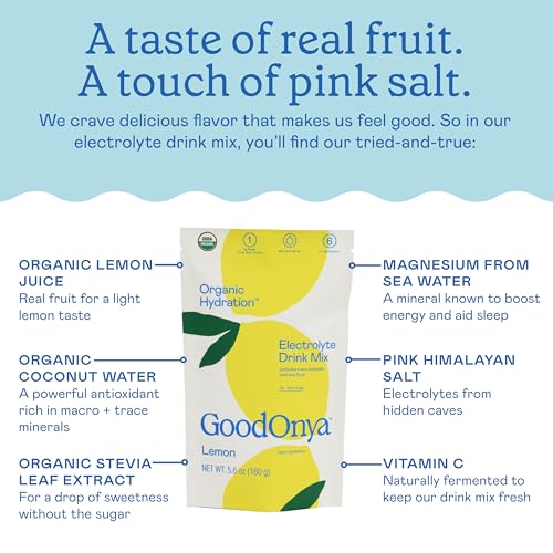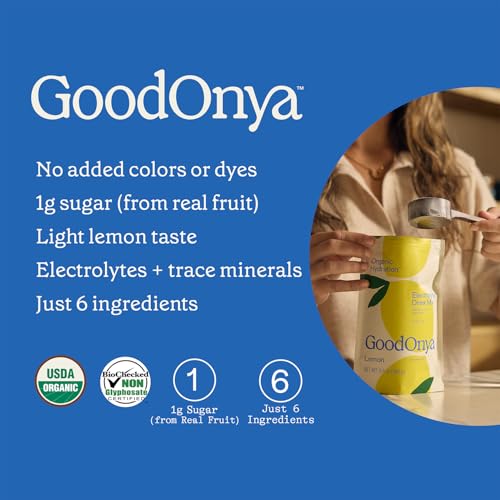 GOODONYA Organic Hydration Electrolyte Drink Mix, Certified Organic Hydration Powder, Non-GMO, Biochecked Glyphosate Free, Low Sugar, Lemonade Flavor, No Artificial Flavors, 20 Servings