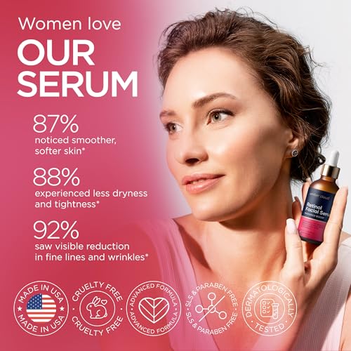 Sponsored Ad - Retinol Serum for Face with Hyaluronic Acid, Vitamin E & Aloe Vera Anti-Aging Serum - All Skin Types - Supports Even Tone - Day and Night - Made in USA - 1 Oz