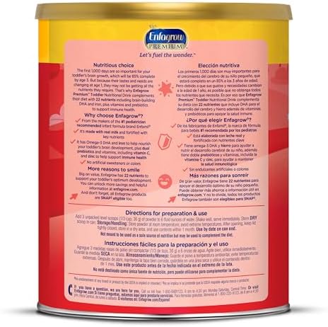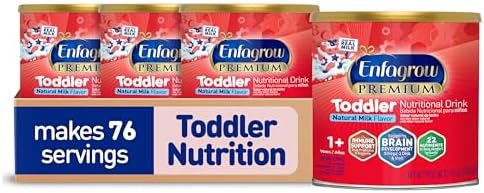 PREMIUM Toddler Nutritional Drink, Natural Milk Flavor, Omega-3 DHA for Brain Support, Prebiotics & Vitamins for Immune Health, Non-GMO, Powder Can, 24 Oz, Pack of 4