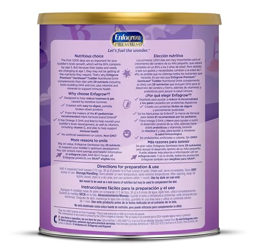 PREMIUM Gentlease Toddler Nutritional Drink, Made with Real Milk, Designed to Ease Fussiness, Gas & Crying, Brain-Building Omega-3, Nutrients for Growth & Immune Support, Powder Can, 29.1 Oz