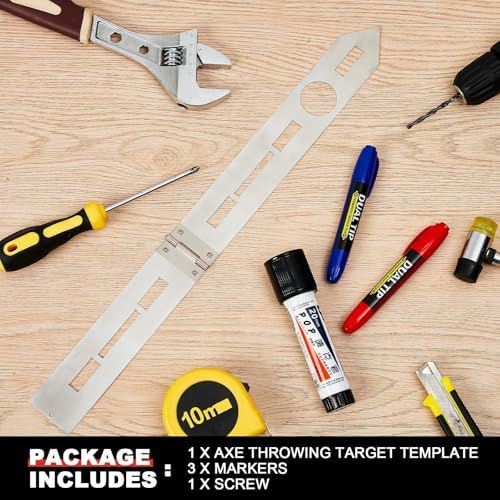 Epakh Axe Throwing Target Template Stainless Steel Target Template Stencil Comes with 3 Markers Throwing Board Stencil Axe Set for Drawing, 20 x 2 Inches (Foldable)