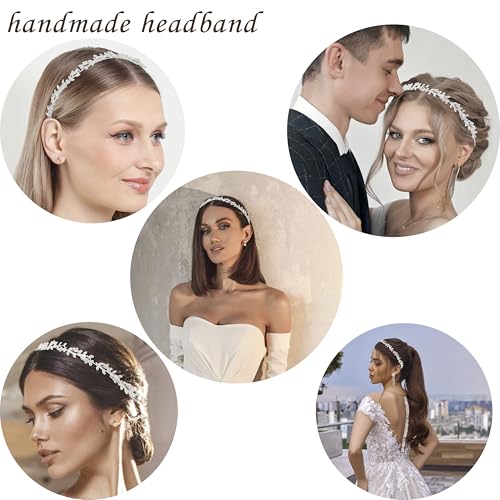 Wedding Headbands for Women Girls Bride Headband Bridal Headpieces Crystal Hair Band Silver Tiara Wedding Gifts Hair Accessories Elegant Fairy Rhinestone Handmade Leaves Flowers