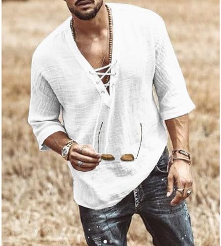 Men's Fashion Shirt Short Sleeve Beach V-Neck Drawstring Printing Yoga African Summer Top