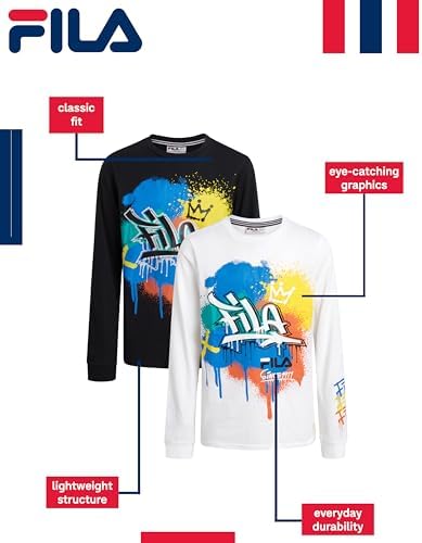 Boys Long Sleeve Shirts - 2 Pack Cute Casual Long Sleeve Top - Crewneck Graphic Tees for Boys with Rib Cuffs (8-20)