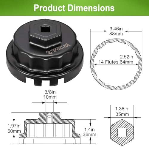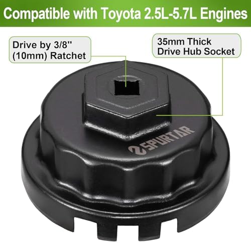 Oil Filter Wrench for Toyota Cap Style Oil Filter Removal Tool 64mm for Lexus, Camry, 4 Runner, RAV4, Tundra, Tacoma, Highlander, Sienna, Sequoia, Avaion, Venza 2.5-5.7L Engine