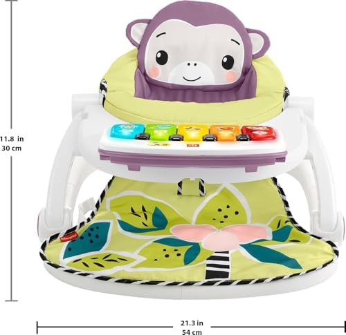 Fisher-Price Portable Baby Chair Kick & Play Deluxe Sit-Me-Up Seat with Piano Learning Toy & Tray for Infants to Toddlers, Purple Monkey