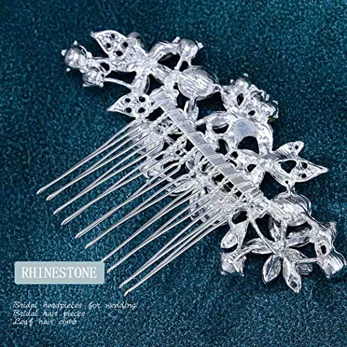 Foyte Crystal Bride Wedding Hair Comb Silver Flower Bridal Headpieces Leaf Hair Pieces Rhinestone Bridesmaid Side Combs Hair Accessories for Women (crystal silver)