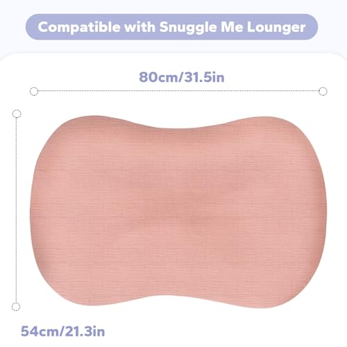 FUNUPUP Muslin Baby Lounger Cover Compatible with Snuggle Me Lounger, Infant Lounger Pillow Cover for Newborn, Removable Newborn Lounger Cover for Boys and Girls, Pink&Pink Flower