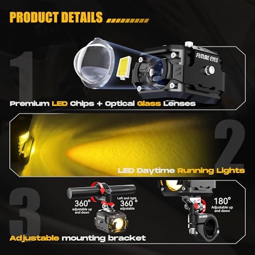 Sponsored Ad - LED Motorcycle Fog Lights, 60W Auxiliary Driving Lights, High/Low Beam, Amber/White Daytime Running Light, Waterproof Off-Road Light for Motorcycles, ATVs, UTVs & Dirtbike