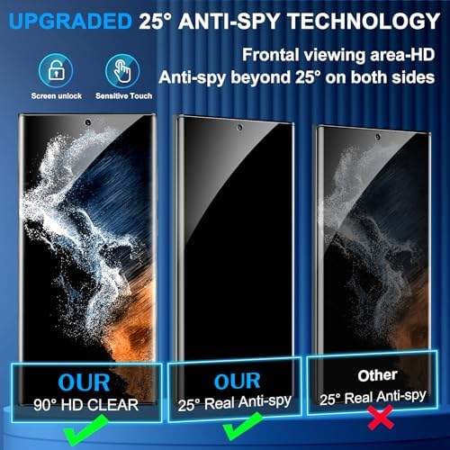 Sponsored Ad - [2+2 Pack] Galaxy S22 Ultra Privacy Screen Protector, 9H Tempered Glass, Ultrasonic Fingerprint Support, 3D Curved, HD Clear Anti-Spy Film for Samsung S22 Ultra 5G Glass Screen Protecto