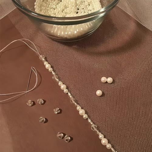 Wedding Veil Pearls and Crystals Beaded Edge 1 Tier Fingertip Length Bridal Veil