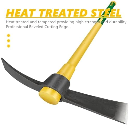 Cutter Mattock, 36" Heavy Duty Pick Axe with Forged Heat Treated Steel Blades Hoe for Weeding, Prying and Chopping, Digging Tool with Fiberglass Handle (36.3inch, Yellow)