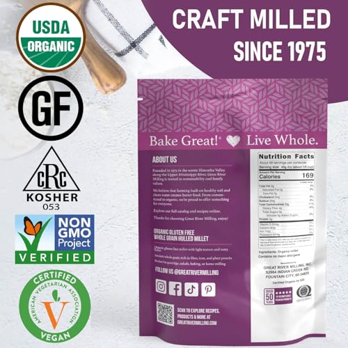 Sponsored Ad - Great River Milling Organic Hulled Millet | Whole Grain Ancient Grain | Gluten-Free, High-Fiber Superfood | Non-GMO, Kosher Certified | Ideal for Salads, Porridge & Baking | 5 Lb