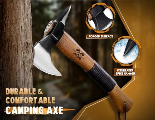 Sponsored Ad - Grumpy Bear 15" Survival Axe – Forged High Carbon Steel Hatchet with Spike Tail for Breaking Doors, Glass & Ice, Leather Handle & Lanyard, Ideal for Bushcraft & Outdoor Adventures