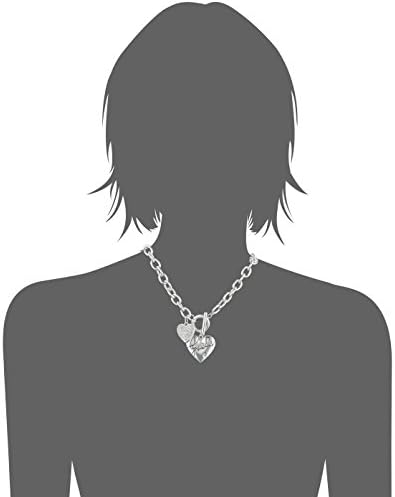 "Basic Silver Logo Heart and Pave Heart Toggle Pendant Necklace