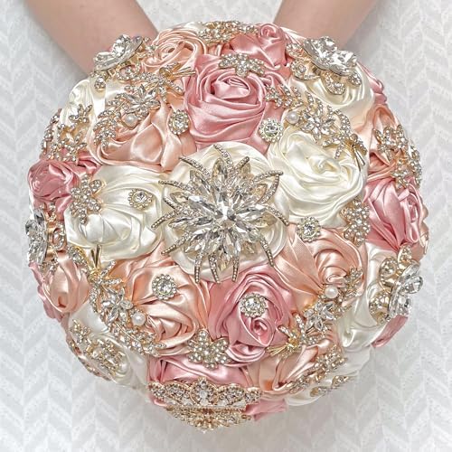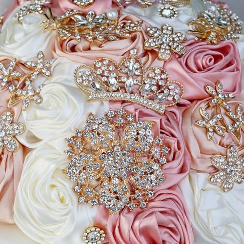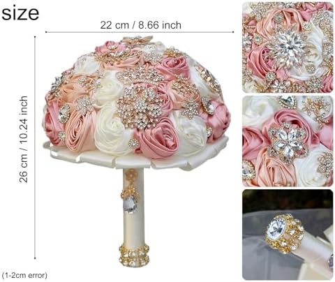 Sponsored Ad - Handmade Satin Rose Floral Bling Pearl Decor Bridal Wedding Bouquet Rhinestone Pendant Artificial Brooch Flowers for Bride Bridesmaid Quinceanera