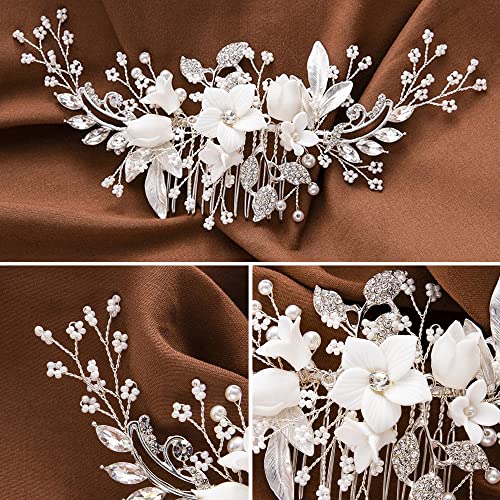Handmade Silver Bridal Hair Comb Clip Flower Bride Wedding Bridesmaids Hair Vine Crystal Hair Accessories for Brides Headpieces