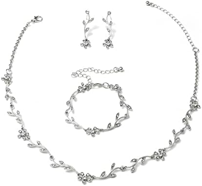 Crystal Necklace Earrings Bracelet Bridal Wedding Jewelry Set Rhinestone Choker Necklace For Brides Bridesmaid
