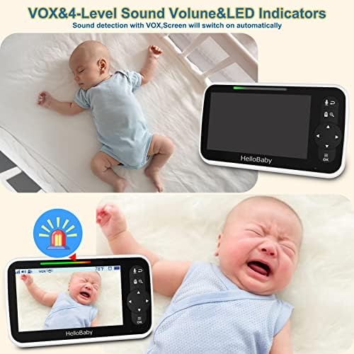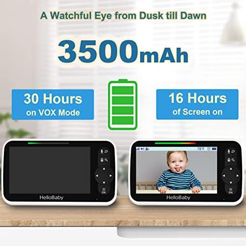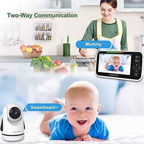 HelloBaby 5 Inch Video Baby Monitor with Camera and Audio, Remote Pan-Tilt-Zoom Camera with Night Vision, 2-Way Talk, Temperature, 8 Lullabies and 1000ft Range Baby Monitor No WiFi Needed