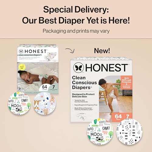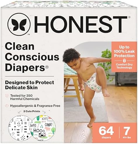 Sponsored Ad - Clean Conscious Diapers for Delicate Skin, Up to 100% Leakproof Hypoallergenic Fragrance-Free Baby Diapers, Gender Neutral Prints, Super Club Box, Size 7 (41+ lbs), 64 Count