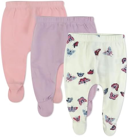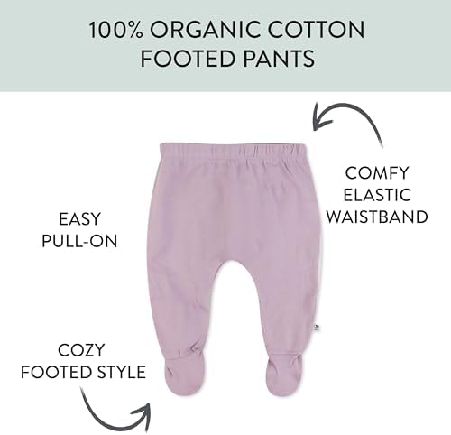 HonestBaby 3-pack Footed Pants Roomy Fit Pull on Bottoms 100% Organic Cotton for Infant Baby Boys, Girls, Unisex