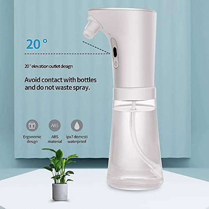 • IPX6 Waterproof--Automatic alcohol dispenser with leak-proof waterproof technology, It can be washed directly in water due to waterproof rating IPX6, and to prevent alcohol or water corrosion of the circuit board. The waterproof base with rubber seals is designed to help prevent the battery compartment from being corroded by immersion in water, thus preventing the sensor from working