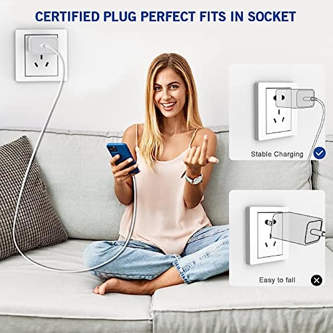 • 【Universal Compatibility】This new upgraded iPhone 12 Charger offers fast charging for iPhone 13 Pro Max/13 Pro/13/13 Mini/12 Pro/12/12 Mini/11/11 Pro/11 Pro Max/XS Max/XS/X/XR/8 Plus/8 , iPad Pro/ iPad Air/ iPad, AirPods Pro. Standard Charging Speed for iPhone 7/7 Plus/6s/6s Plus/6/6 Plus/SE/5s/5/5c.