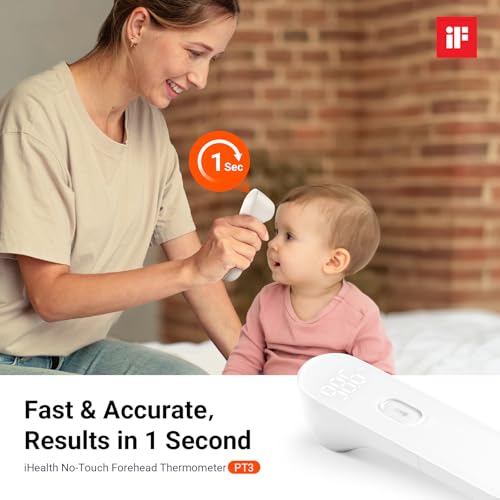 Sponsored Ad - iHealth No-Touch Forehead Thermometer for Adults, Kids, Babies - 1s Fast Accurate, 3 Ultra-Sensitive Sensors, Quiet Vibration Feedback, Digital Large LED Digits, Easy to Use for Home &