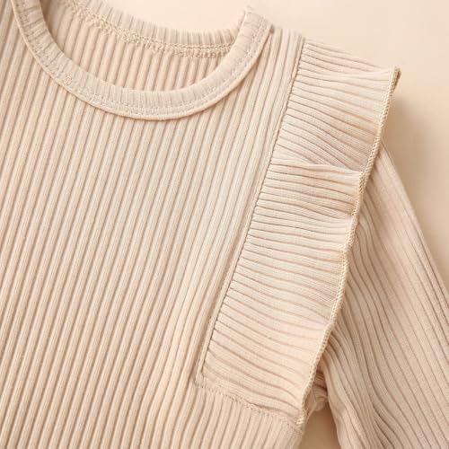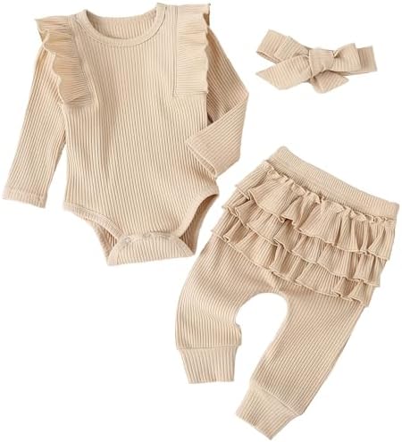 Baby Girl's 3pc Rib Frill Long Sleeve Romper and Pant Set